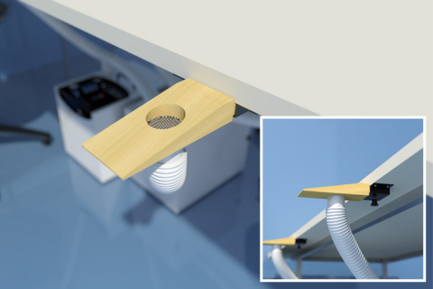 The Suction Wedge is an integrated downdraft bench accessory for handpiece/filing applications