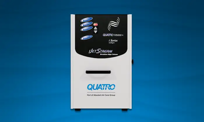 Congratulations! You are now owner of a Quatro JetStream Tallboy dust collector; an efficient unit engineered to capture and contain airborne particulate generated by your application. As soon as the unit starts to operate, you will notice an improvement in air quality.