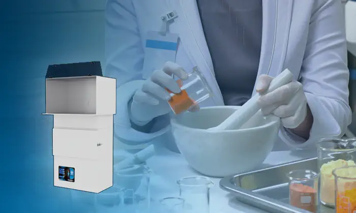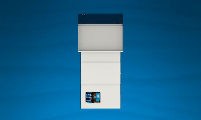For restricted spaces, the low profile configuration allows the system’s containment hood to be installed on the workbench and connected to the top or back of the multi-stage filtration unit via flexible hose.